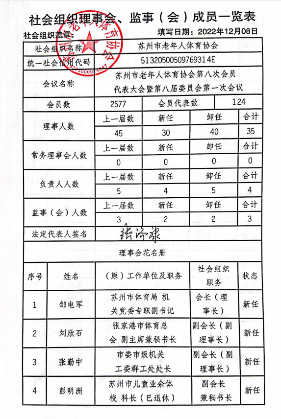 苏州市老年人体育协会第八届换届公示