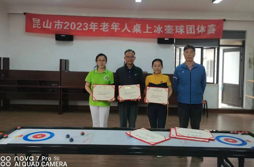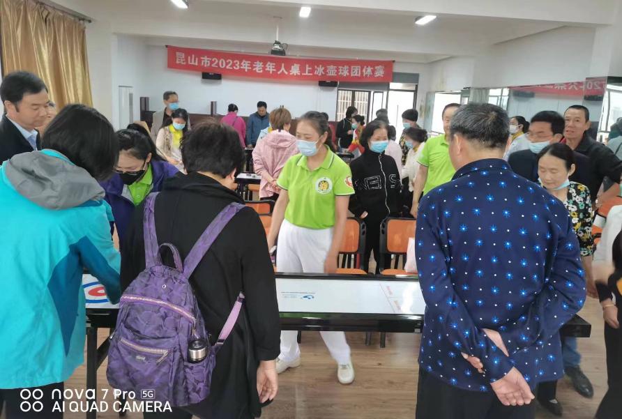 桌上冰壶球是一项衍生于冬奥会的正式比赛项目,由于其趣味性高、可观性强、技战术性丰富,一经推出,就受到了广大老年朋友的欢迎。为了积极响应江苏省老体协、江苏省桌上冰壶球俱乐部和苏州市老体协的号召,积极发展深受广大老年人喜爱的桌上冰壶球运动,推动桌上冰壶球运动在全市的广泛开展,昆山市老年人体育协会于2023年5月24日,在市老年体协多功能厅,举行了2023年昆山市老年人桌上冰壶球团体赛,前来参加此次比赛的代表队共有十个,分别是:昆山开发区、高新区、花桥开发区、巴城镇、陆家镇、周庄镇、锦溪镇、淀山湖镇、周市镇和千灯镇。