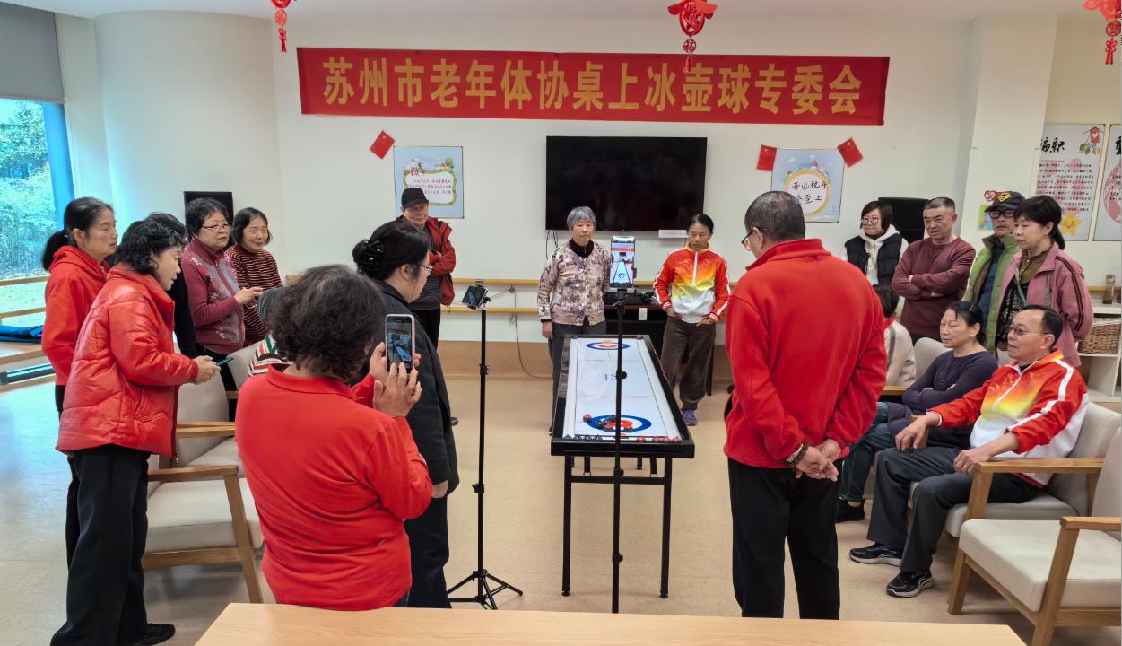 11月20日上午,苏州市老年人体育协会桌上冰壶球专委会6名教练员走进吴江恬愉乐龄养老服务中心,为40位在住老人送上“安全健身+桌上冰壶”公益课堂,开启“银龄乐龄”系列公益第一站。